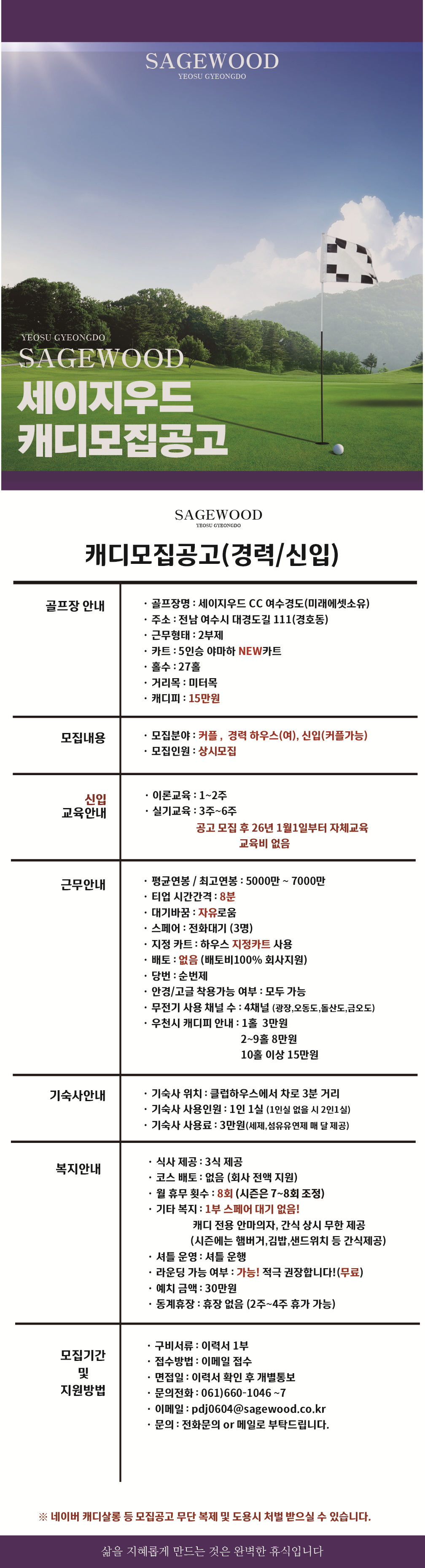 홈캐디 채용정보전라도 전라도 여수 세이지우드 여수경도 골프장 캐디모집 작성자 caddiemon 작성일 2025-12-10 12:33 조회 52 좋아요 0 싫어요 0 인쇄 « 군산 군산cc 골프장 캐디모집 장수GC 골프장 캐디모집 » 목록보기 답글쓰기 Powered by KBoard