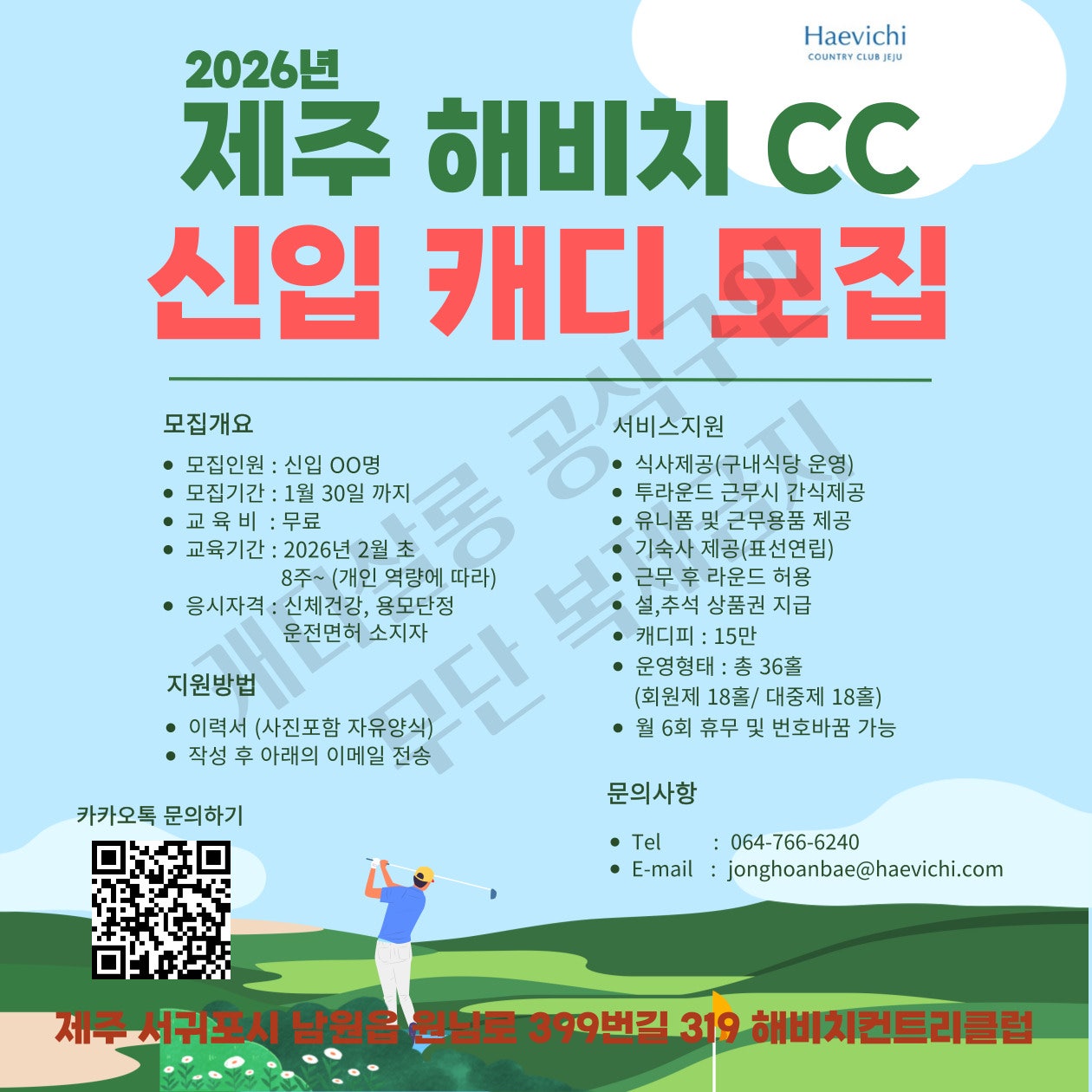 해비치CC는 2~3인 플레이가 많아 여유로운 환경에서 근무 할수 있고, 체계적인 교육으로 경력에 큰 도움이 되며, 직원식당의 맛있는 식사는 또 다른 행복이 되실 수 있습니다. 최고의 환경에서 전문가로 성장할 캐디님을 모집합니다!