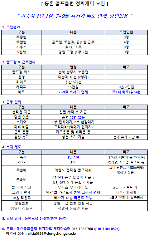 충주 동촌gc 골프장 캐디모집